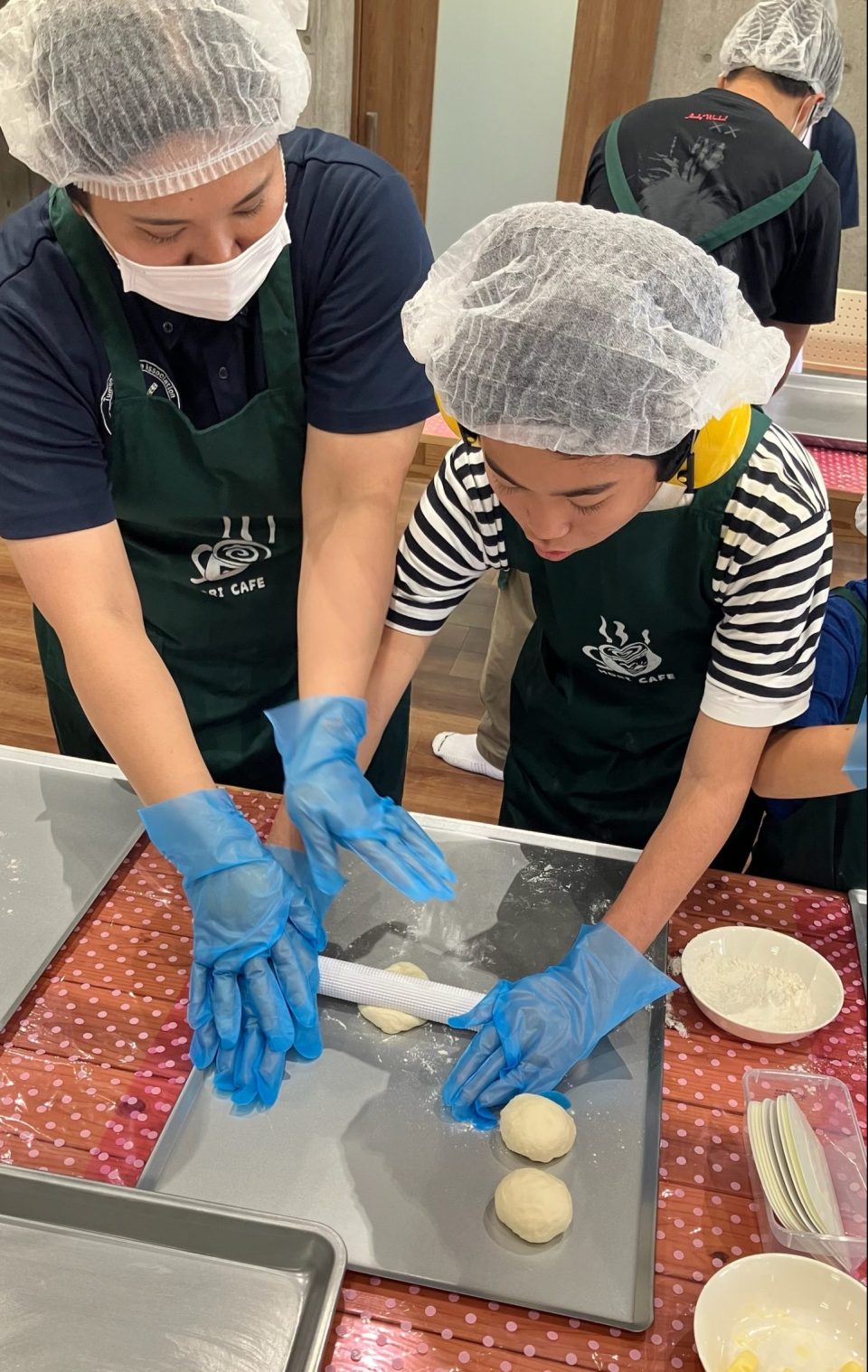 みんな初めてのパン作りに最初は苦戦していましたが、米須の職員に教えてもらいながら塩パン作りに成功しました!🤤