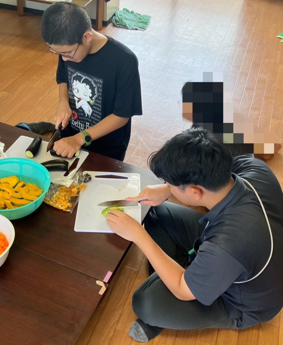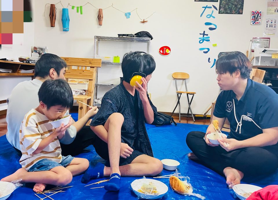 夏祭りっぽい焼き鳥やかき氷、わたあめ、利用者リクエストの冷やしうどんなど今年1番レベルのご飯を作って食べて