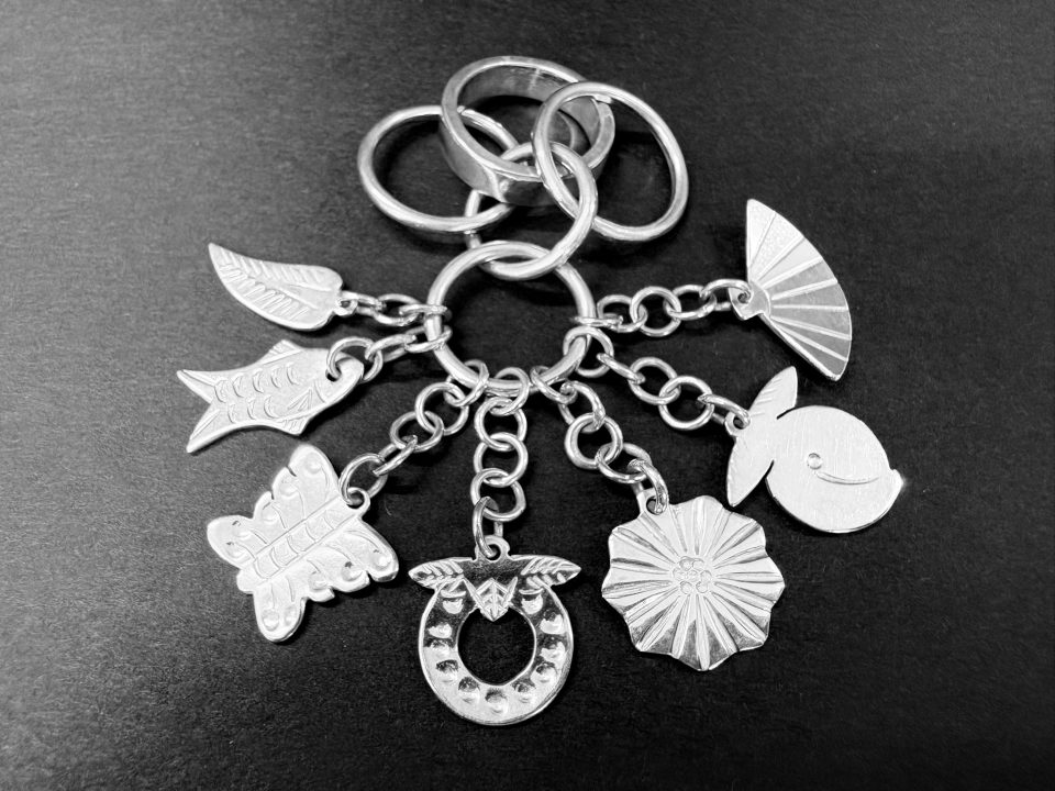 主に銀で作られ、七つの小さな飾りがぶら下がる華やかなデザインが特徴です。