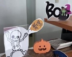 10月に入り、作業の合間でハロウィンの飾り準備しました。