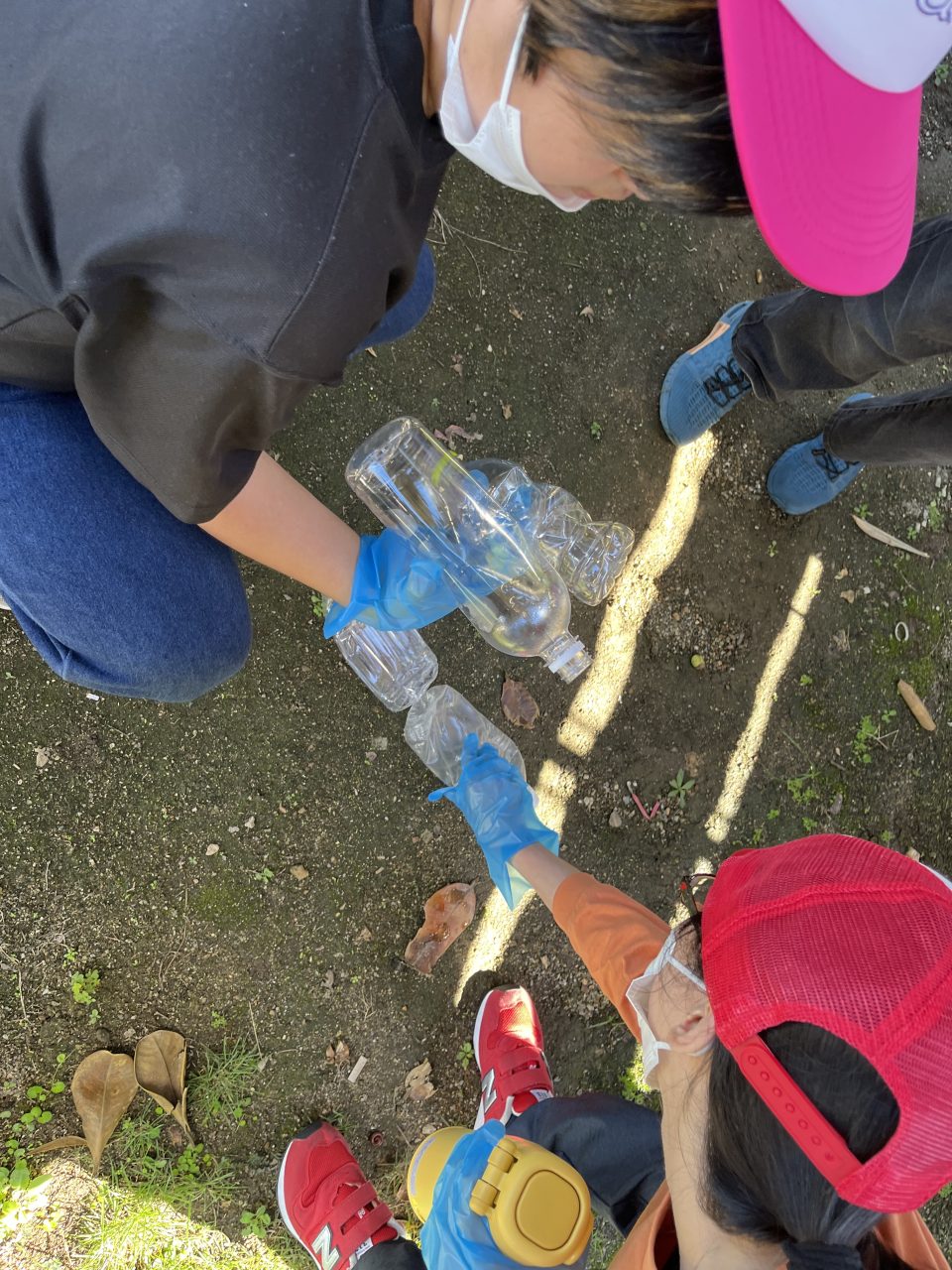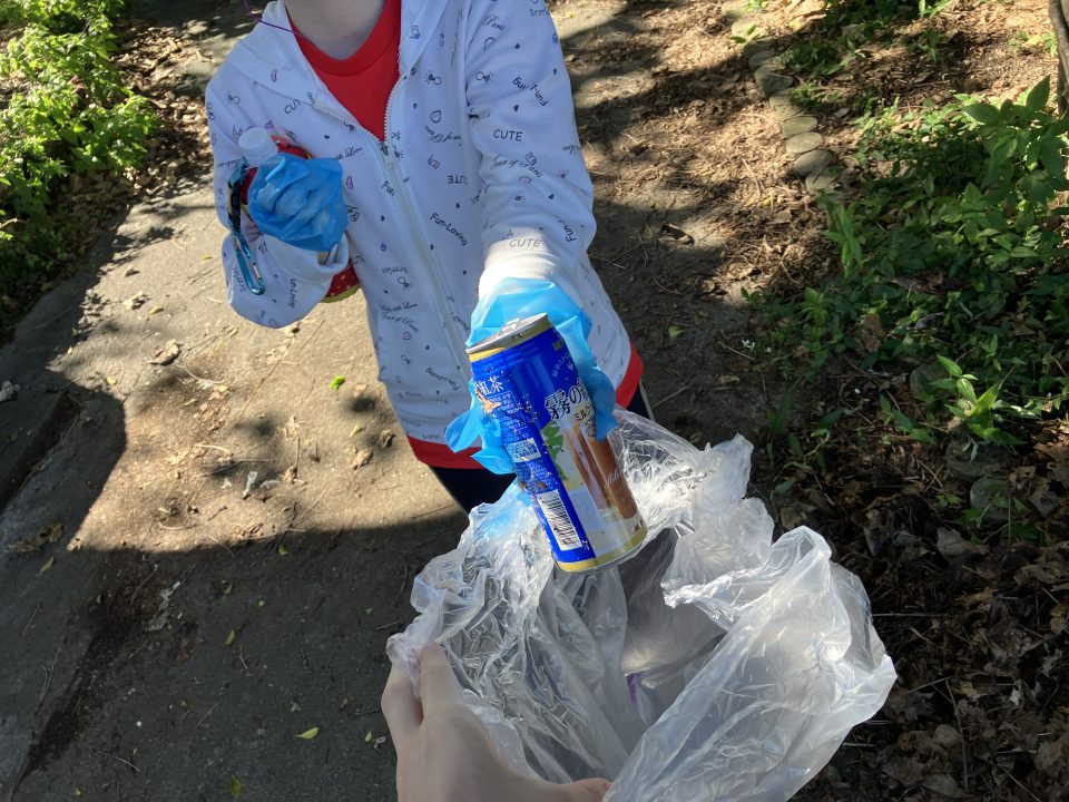 二つのグループに分かれて空き缶やたばこの吸い殻や袋の切れ端など、目についたゴミを拾い集めながら歩きました👯