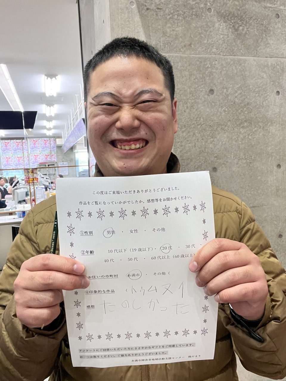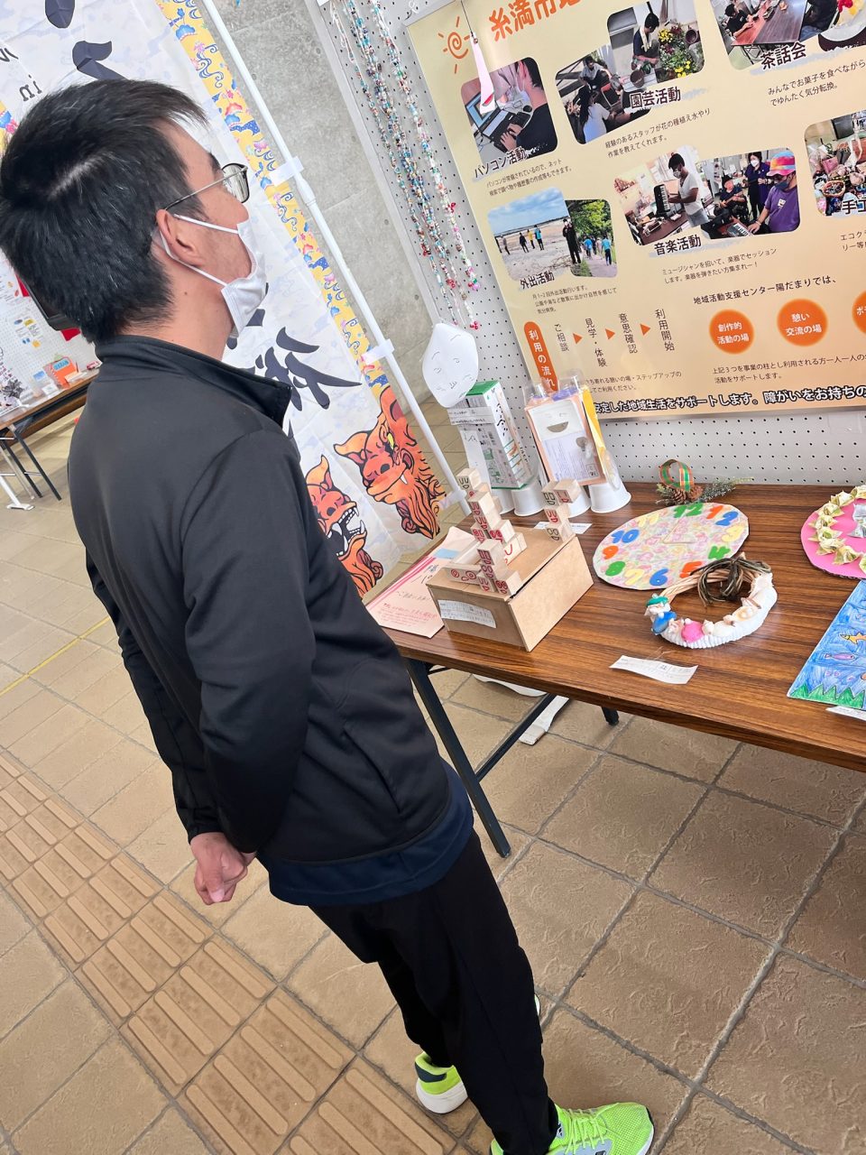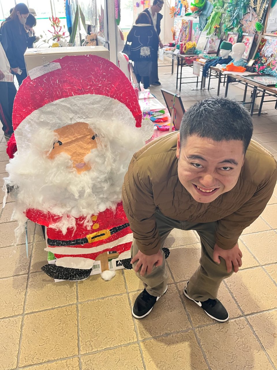 👇 自分が作成した作品が展示され嬉そうな利用者さん