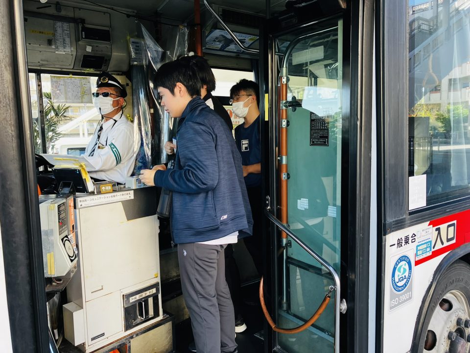 なかなか乗らないバスやモノレールに緊張しているメンバーもいましたが