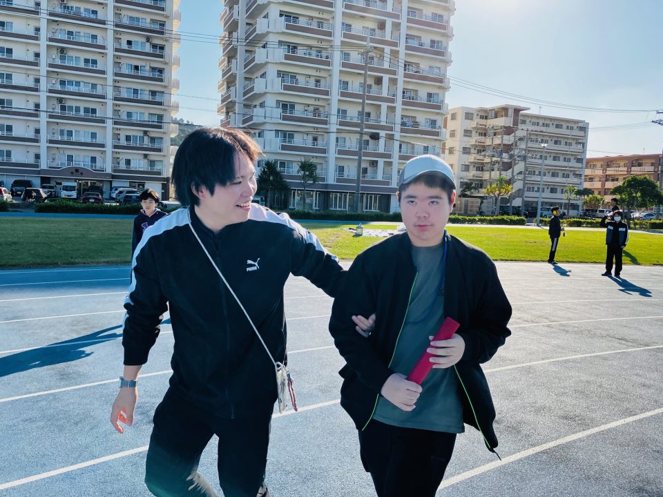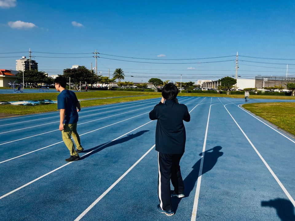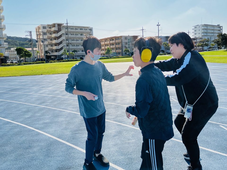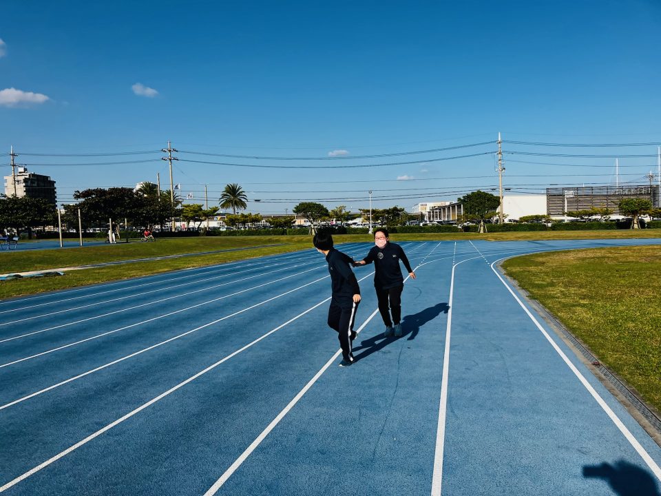 この日は、与那古浜公園の陸上競技場を借りてミニ運動会をしました。
