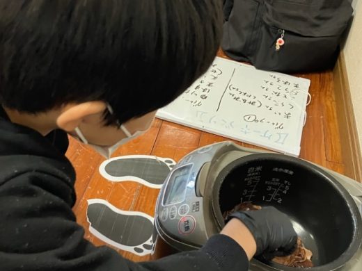 そのあとに、溶かしたチョコレートを入れてさらに混ぜ、炊飯器のスイッチを入れて完成を待ちます⏳✨