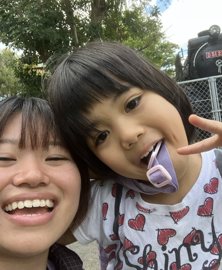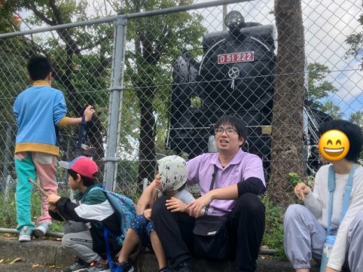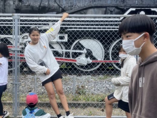 公園にはD51の蒸気機関車があって、「大きい!」「かっこいい!」と興味津々な様子で見ていました🚂✨